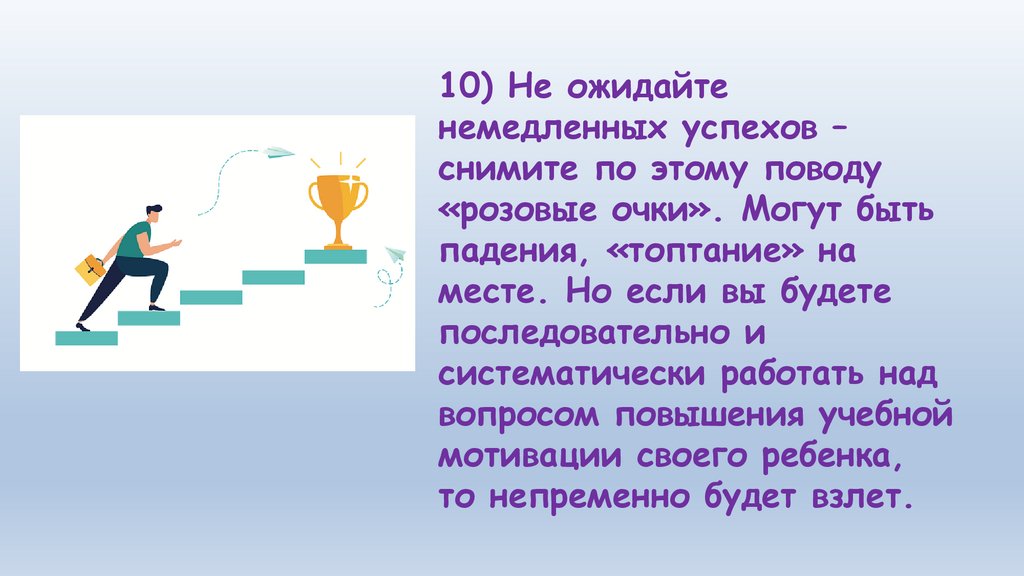 10) Не ожидайтенемедленных успехов –