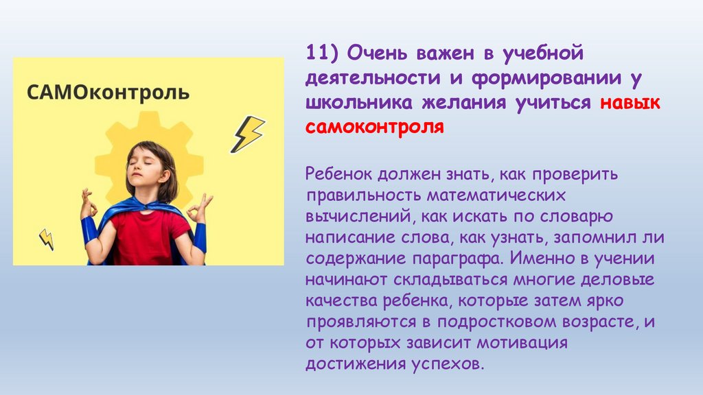 11) Очень важен в учебнойдеятельности и формировании у