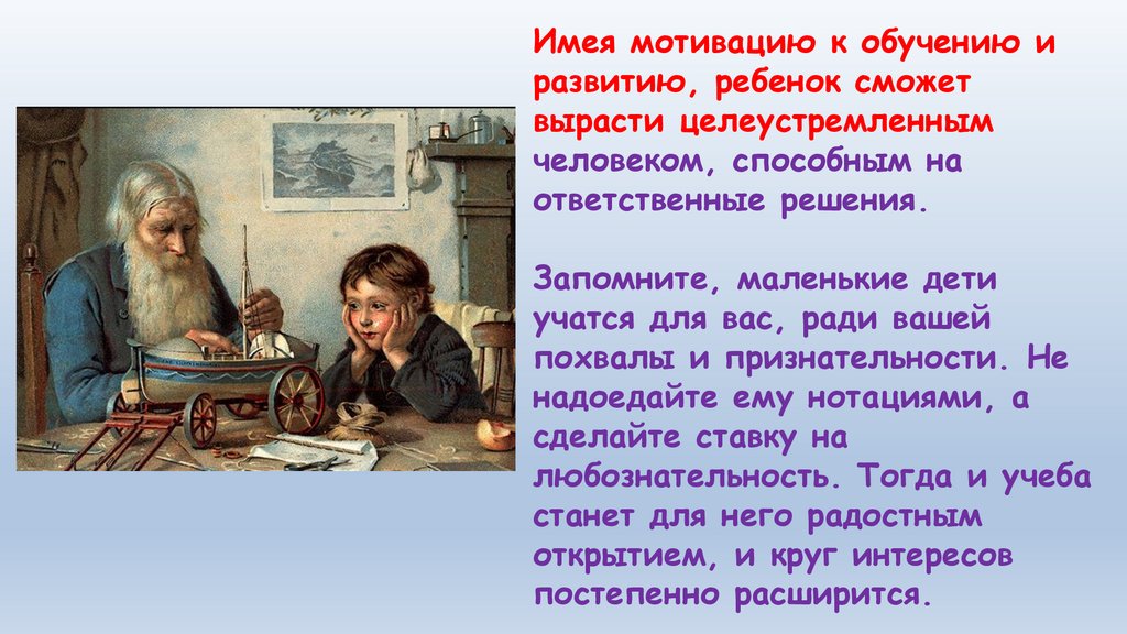 Имея мотивацию к обучению иразвитию, ребенок сможет