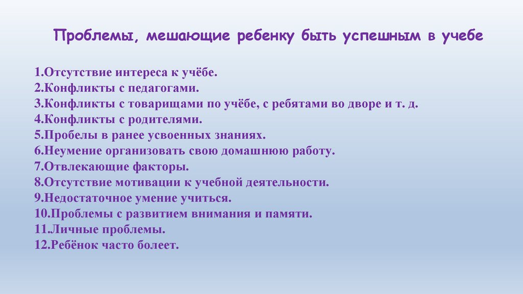 Проблемы, которые не дают ребёнкубыть успешным в учёбе.