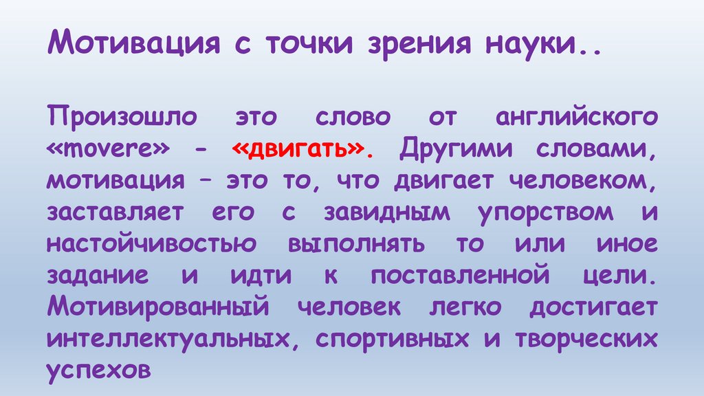 Мотивация с точки зрения науки..Произошло это слово от английского