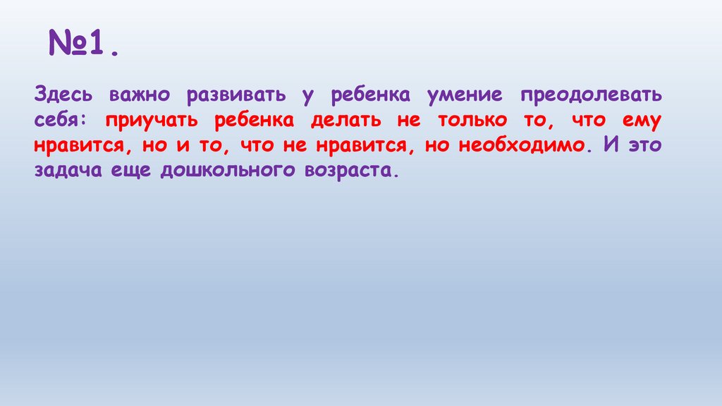 №1.Здесь важно развивать у ребенка умение преодолевать