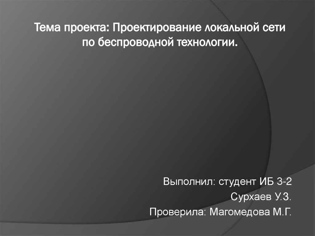 1. Тема проекта: Проектирование локальной сети по беспроводной технологии.