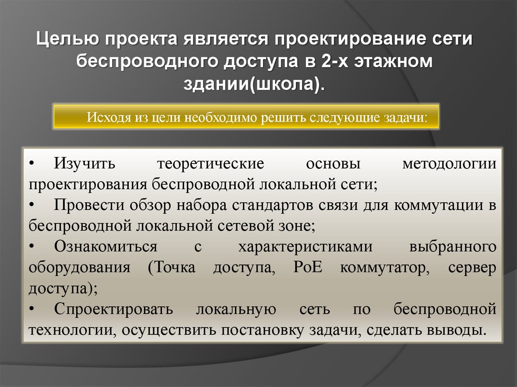 Целью проекта является проектирование сетибеспроводного доступа в 2-х этажном