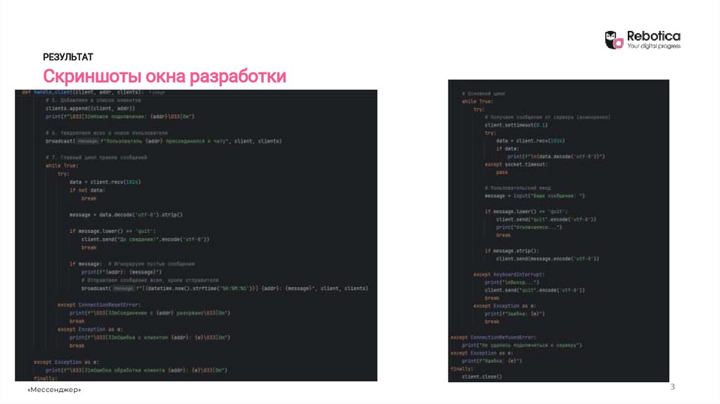 РЕЗУЛЬТАТСкриншоты окна разработки