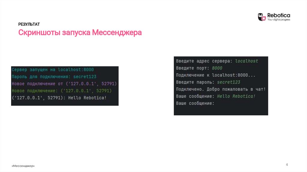 РЕЗУЛЬТАТСкриншоты запуска Мессенджера