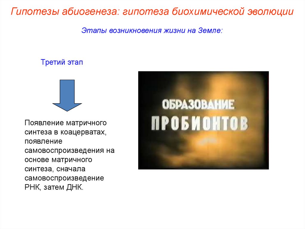Гипотезы абиогенеза: гипотеза биохимической эволюцииНа третьем этапе появляется матричный синтез,