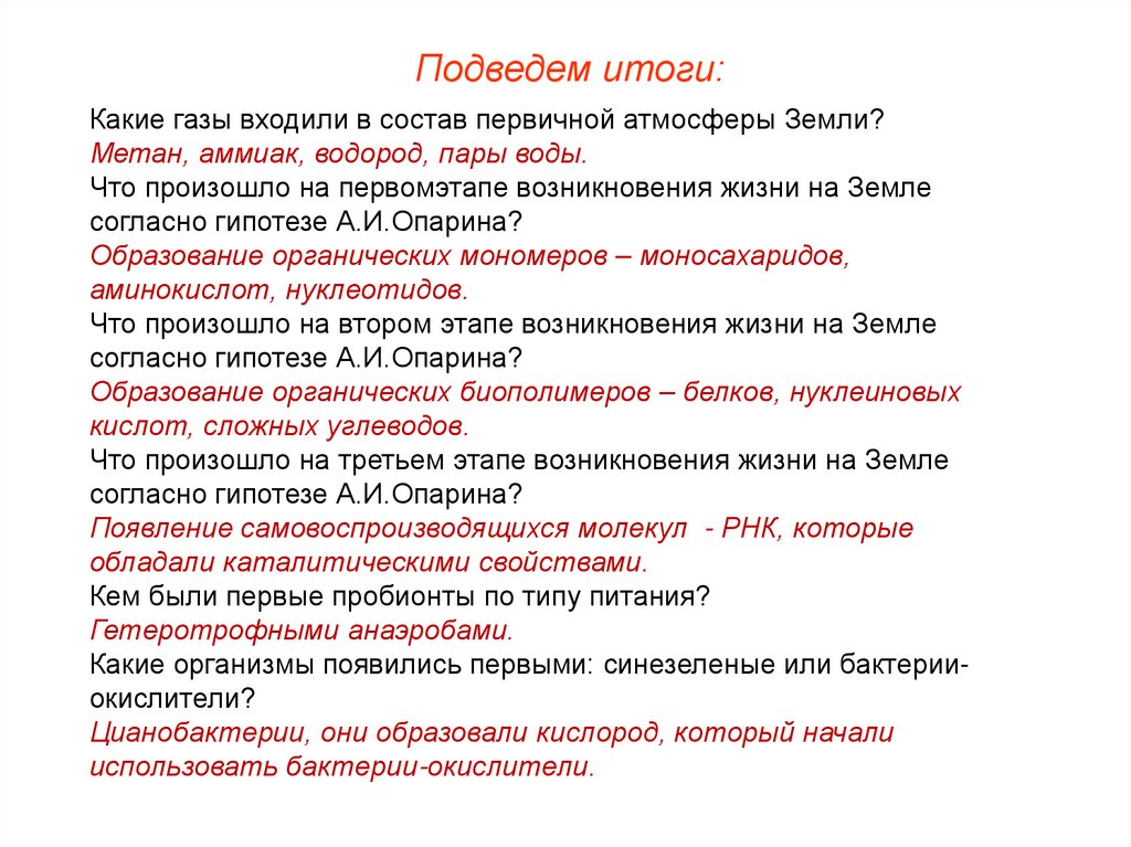 Подведем итоги:Какие газы входили в состав первичной атмосферы Земли?