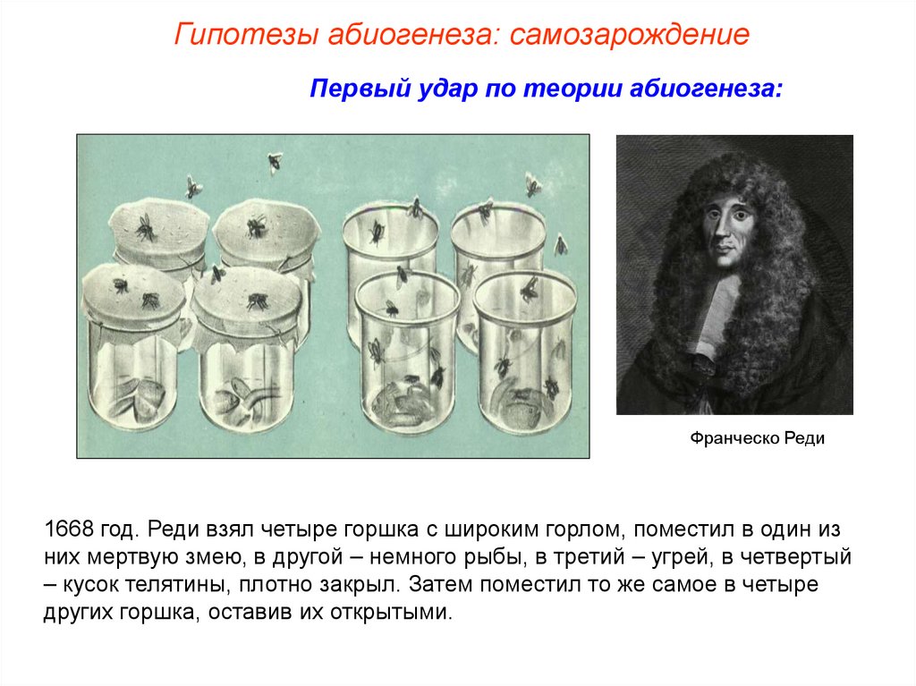 Гипотезы абиогенеза: самозарождениеФранческо Реди