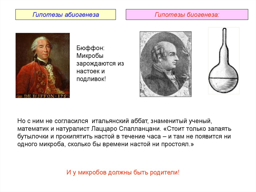 Гипотезы абиогенеза: самозарождениеПервый удар по теории абиогенеза: