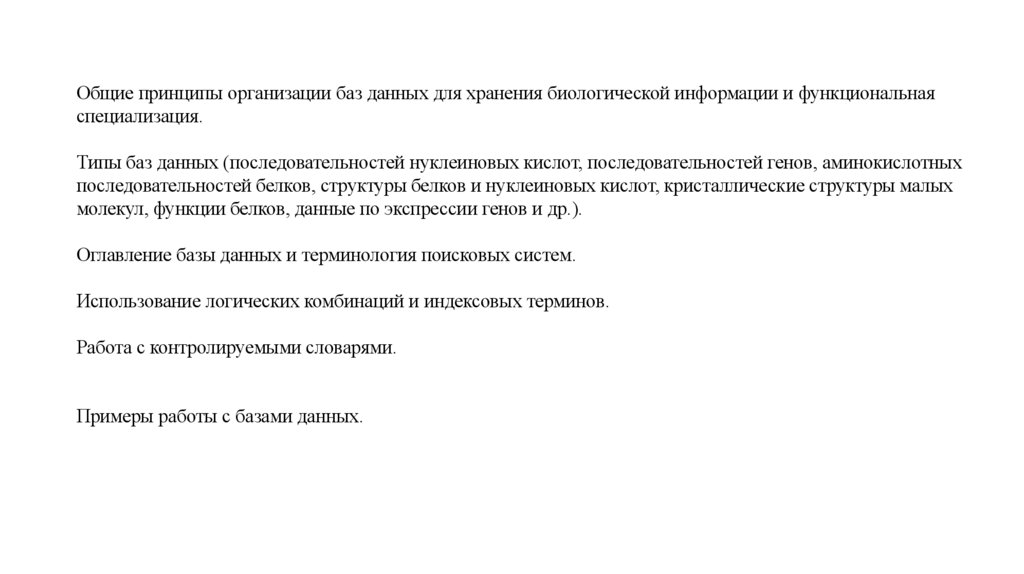 Общие принципы организации баз данных для хранения биологической информации и функциональнаяспециализация.