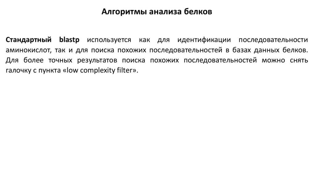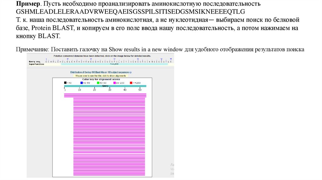 базе, Protein BLAST, и копируем в его поле ввода нашу последовательность, а потом нажимаем на