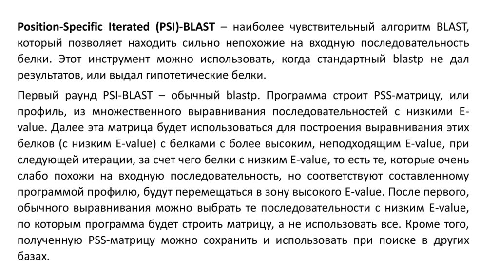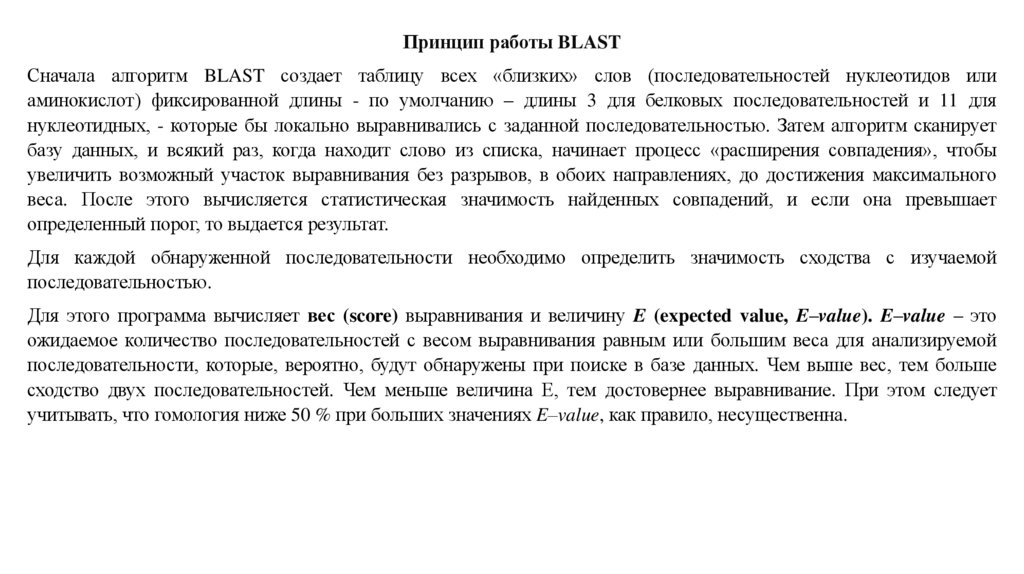 учитывать, что гомология ниже 50 % при больших значениях E–value, как правило, несущественна.