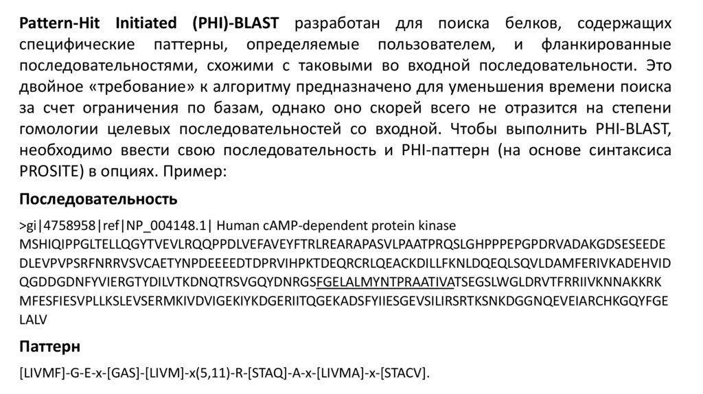 последовательностей. Этот алгоритм позволяет сравнивать входную белковую последовательность с