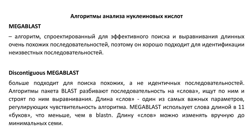 последовательностями из базы данных. Его можно использовать как для случая ДНК, так и для белковых