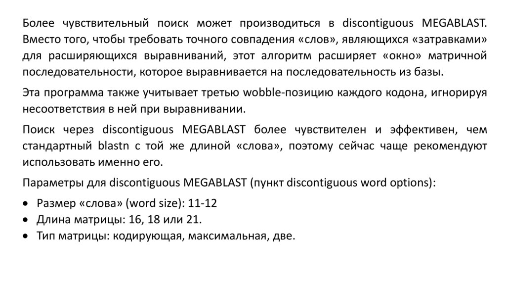 нуклеотидной последовательности. Этот поиск более чувствителен, чем blastn, так как сравнение