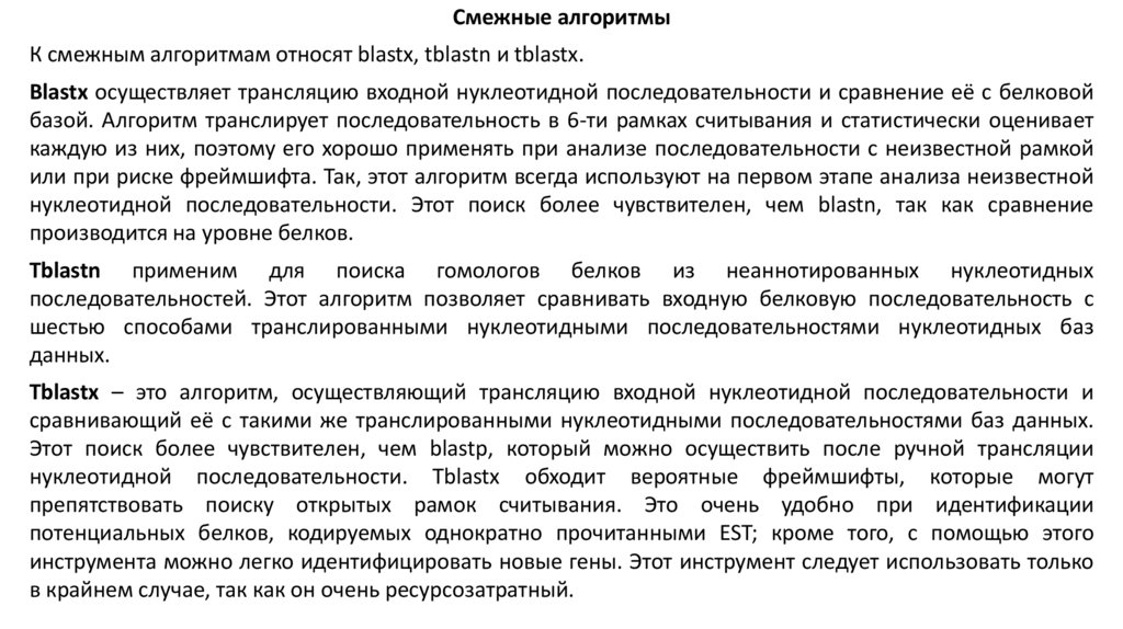 Tblastx – это алгоритм, осуществляющий трансляцию входной нуклеотидной последовательности и