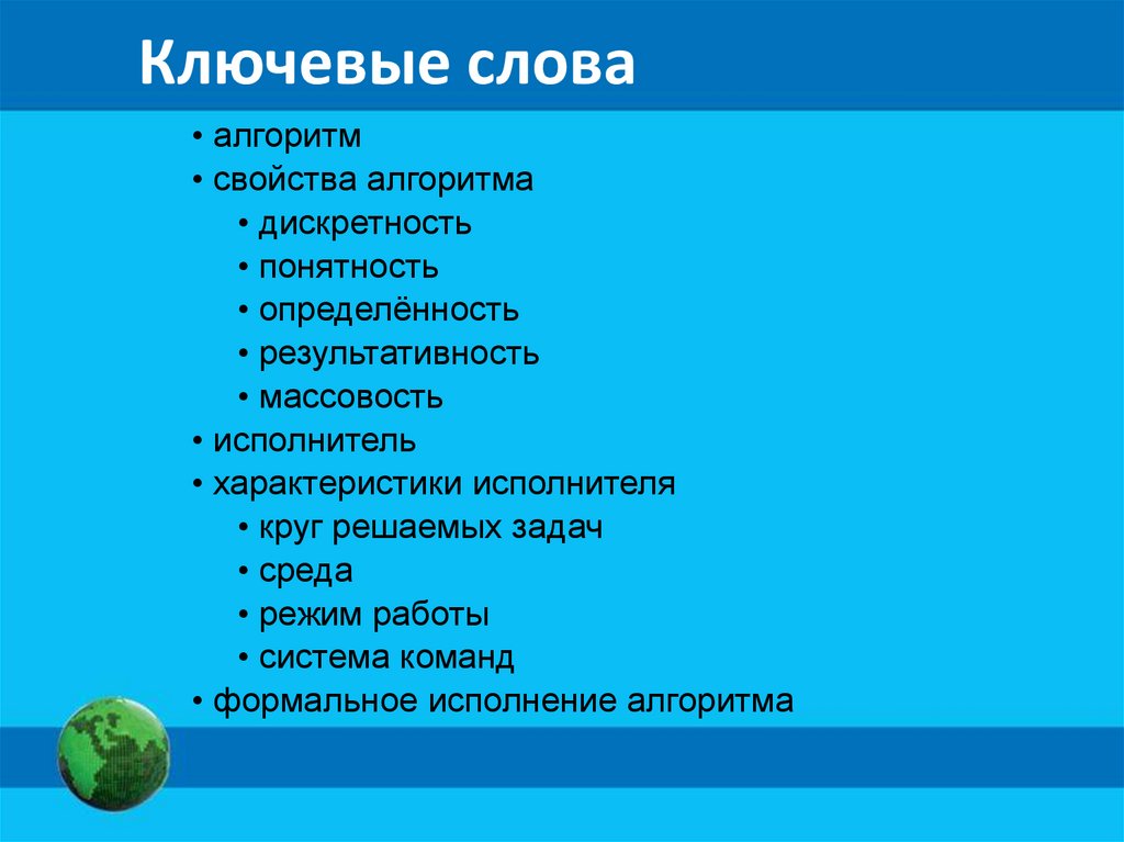 Ключевые слова• алгоритм