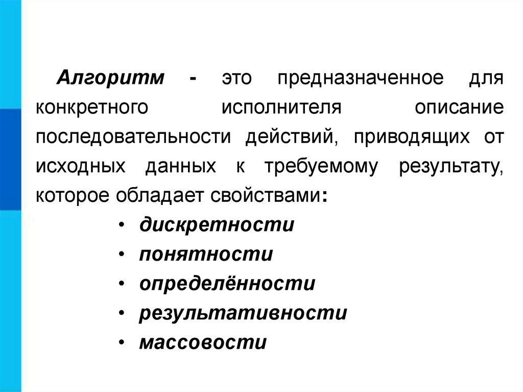 Свойства алгоритмаСвойства алгоритма