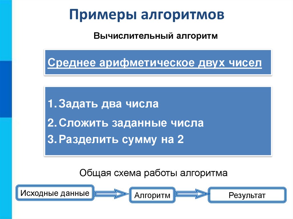Примеры алгоритмовВычислительный алгоритм