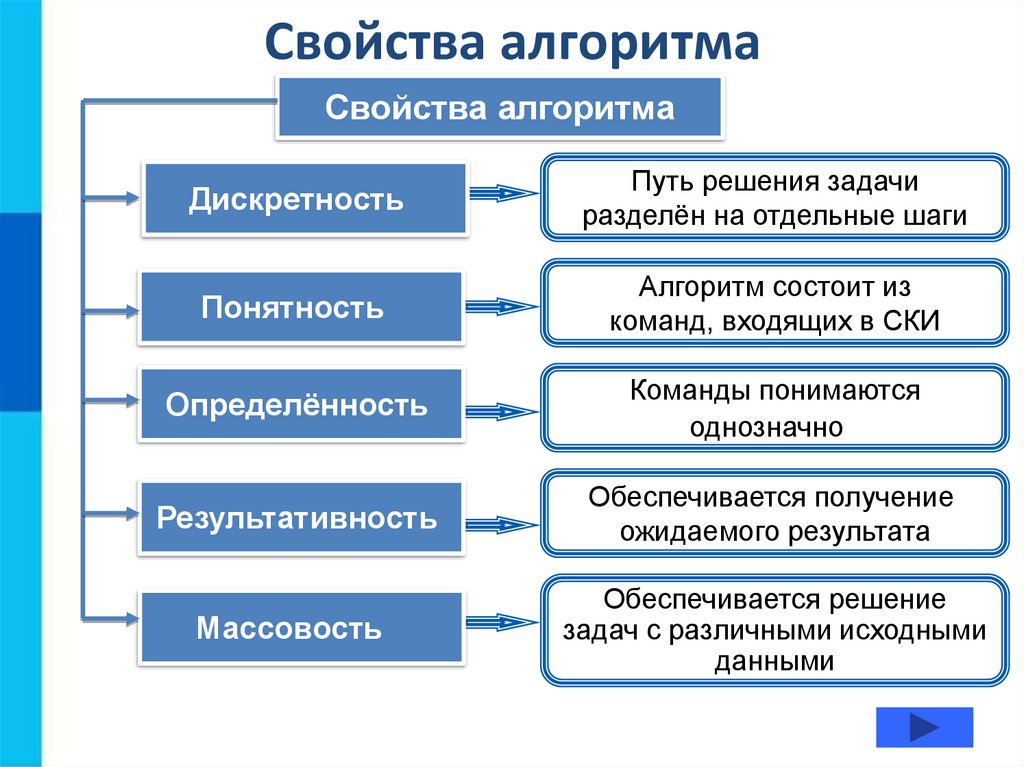 • свойства алгоритма