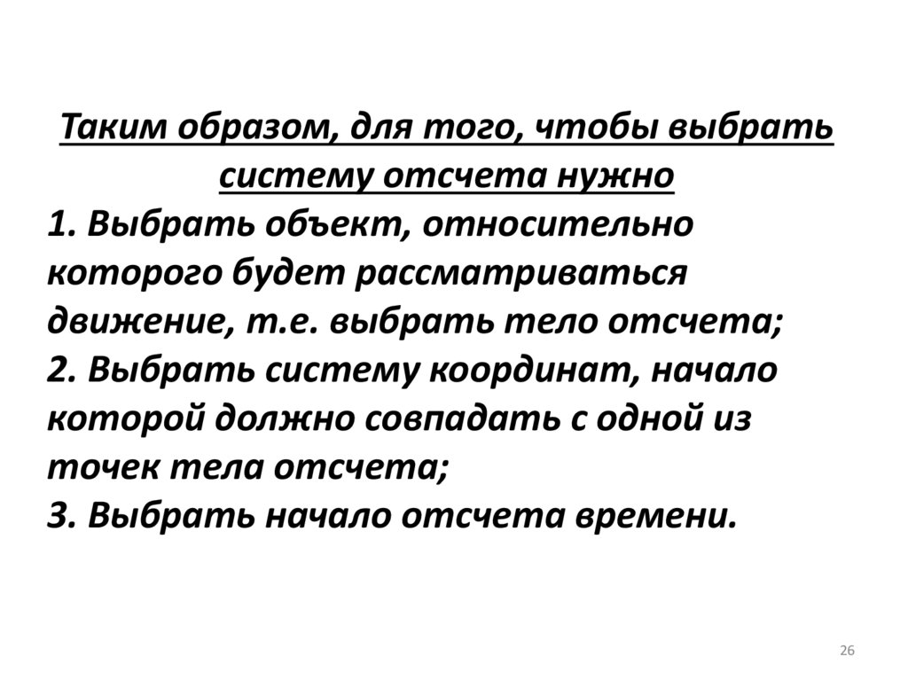 Таким образом, для того, чтобы выбратьсистему отсчета нужно