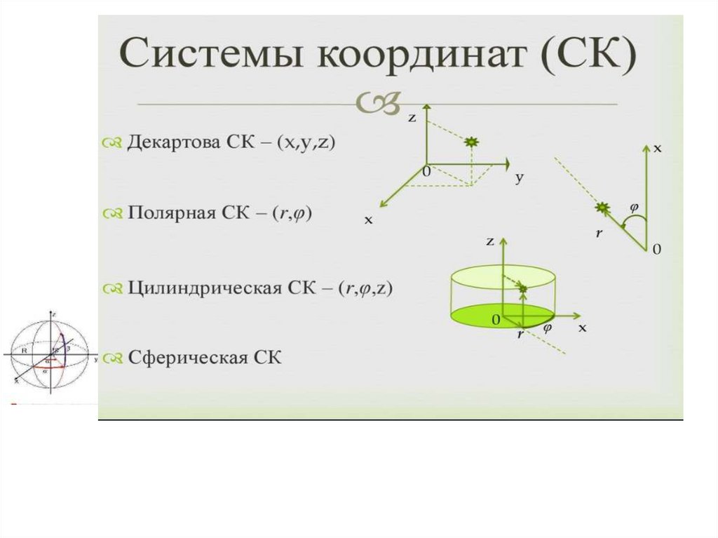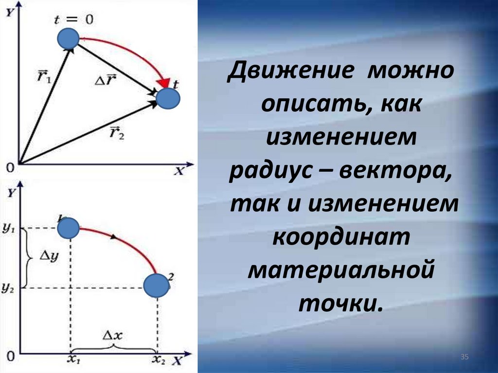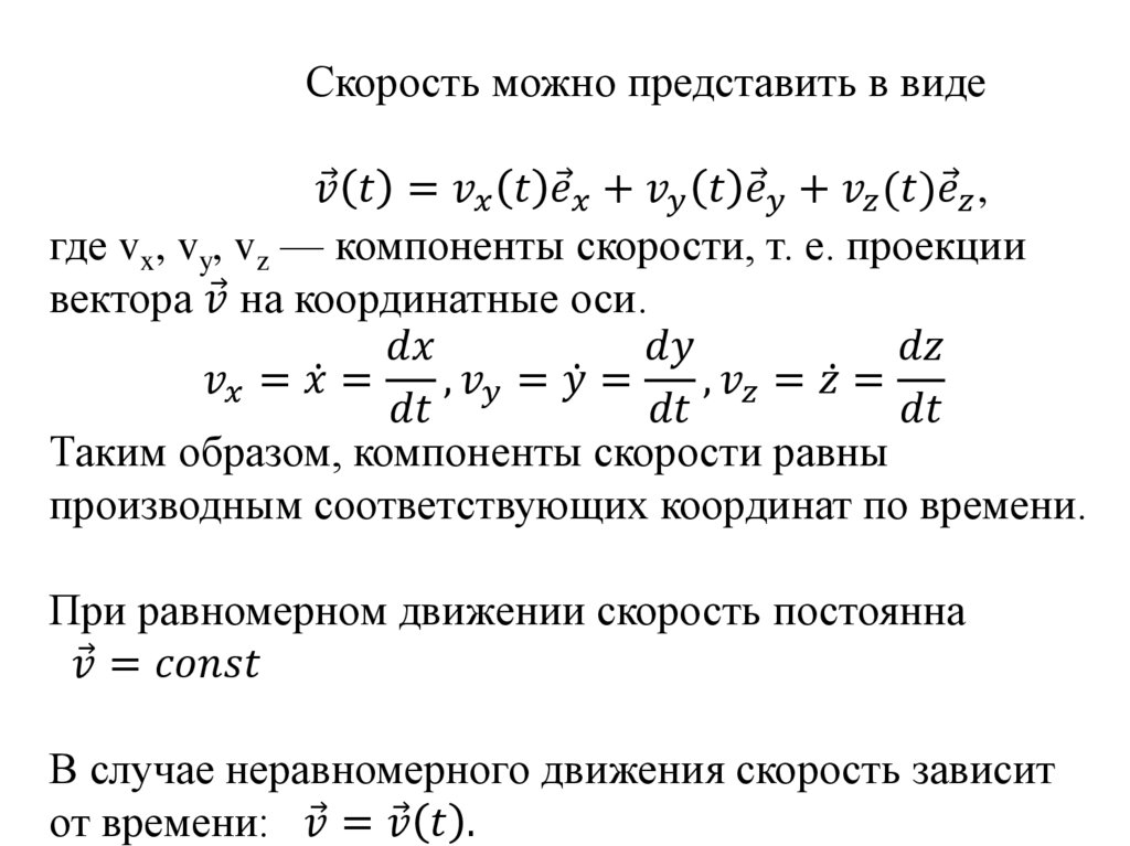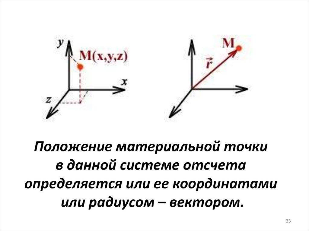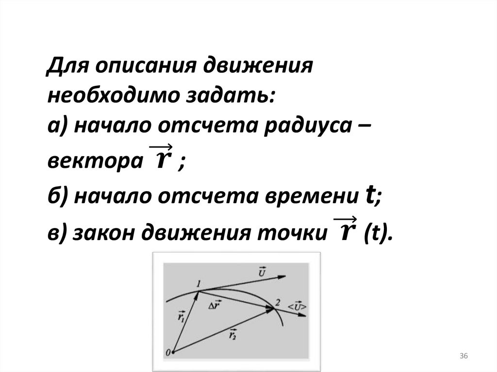 Положение материальной точки в пространстве в любой моментвремени (закон движения) можно определять, применяя :