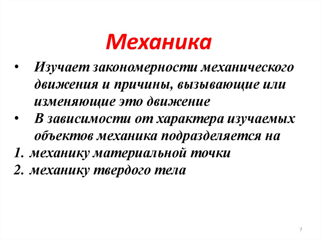 1. Механика – кинематика, динамика2. Электричество – электростатика, магнитостатика,
