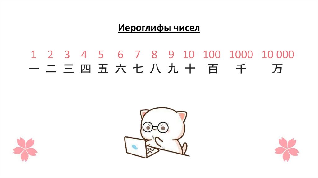 Иероглифы чисел1 2 3 4 5 6 7 8 9 10 100 1000 10 000