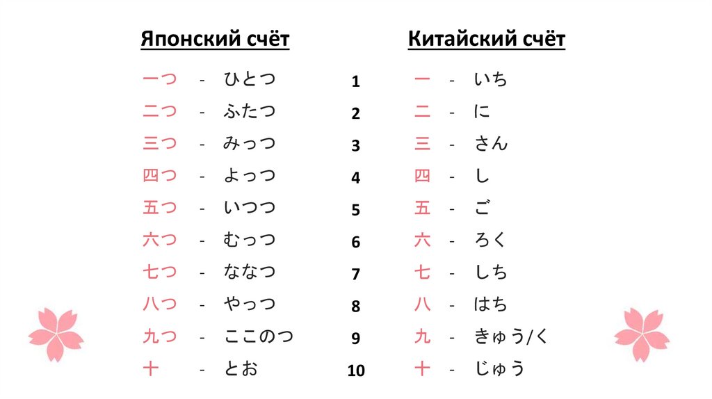 Иероглифы чисел в японском языкеЯпонская система подсчета включает в себя арабские цифры (0–9) и