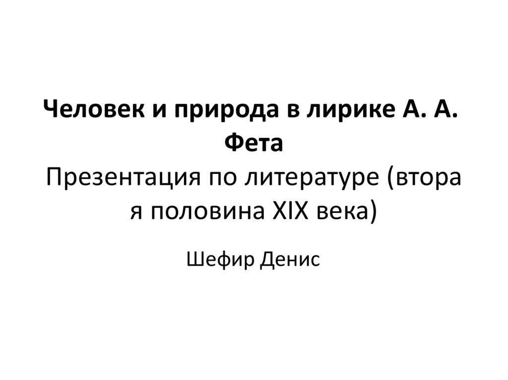 1. Человек и природа в лирике А. А. Фета Презентация по литературе (вторая половина XIX века)