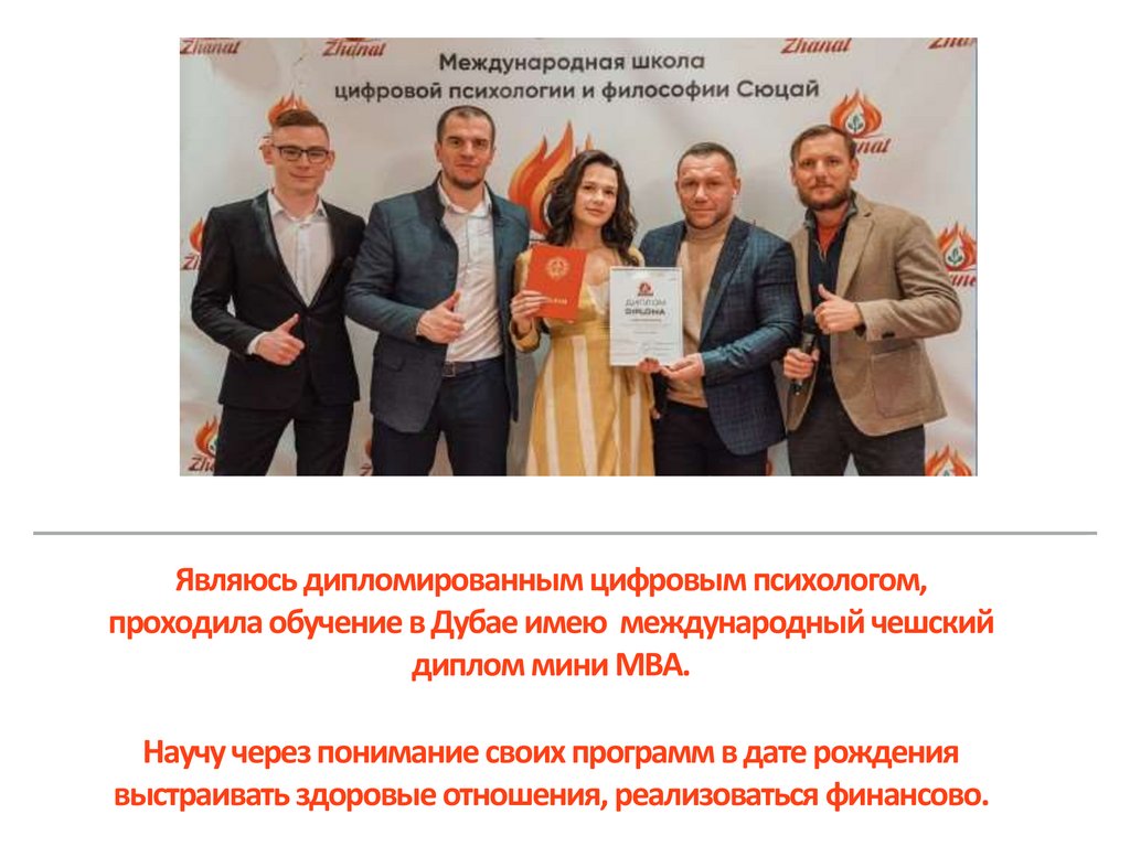 Являюсь дипломированным цифровым психологом,проходила обучение в Дубае имею международный чешский