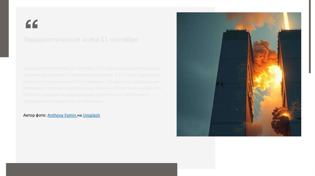 Всемирного торгового центра в Нью-Йорке и гибели тысяч людей. Это