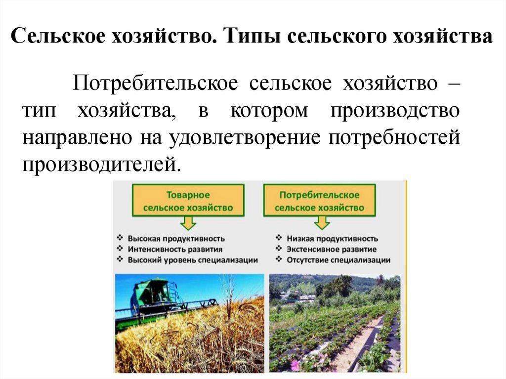 Сельское хозяйство. Типы сельского хозяйстваПотребительское сельское хозяйство –