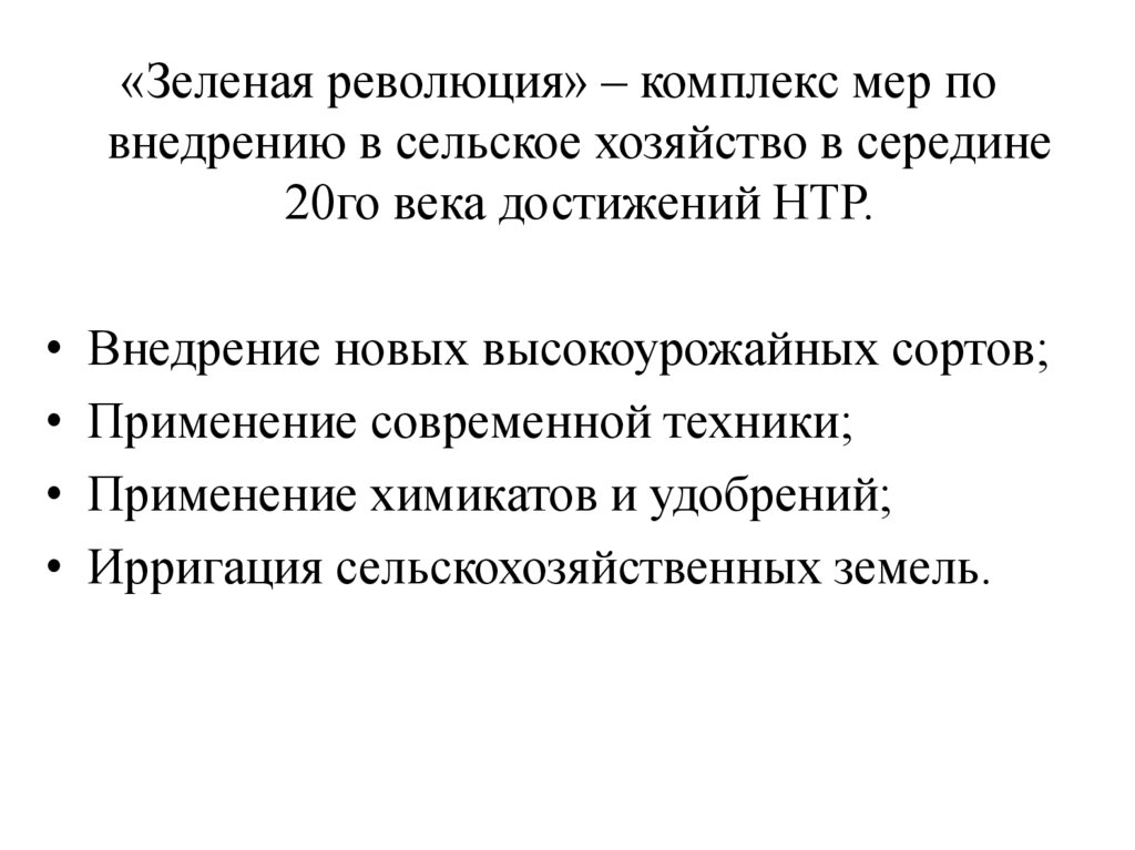 «Зеленая революция» – комплекс мер повнедрению в сельское хозяйство в середине