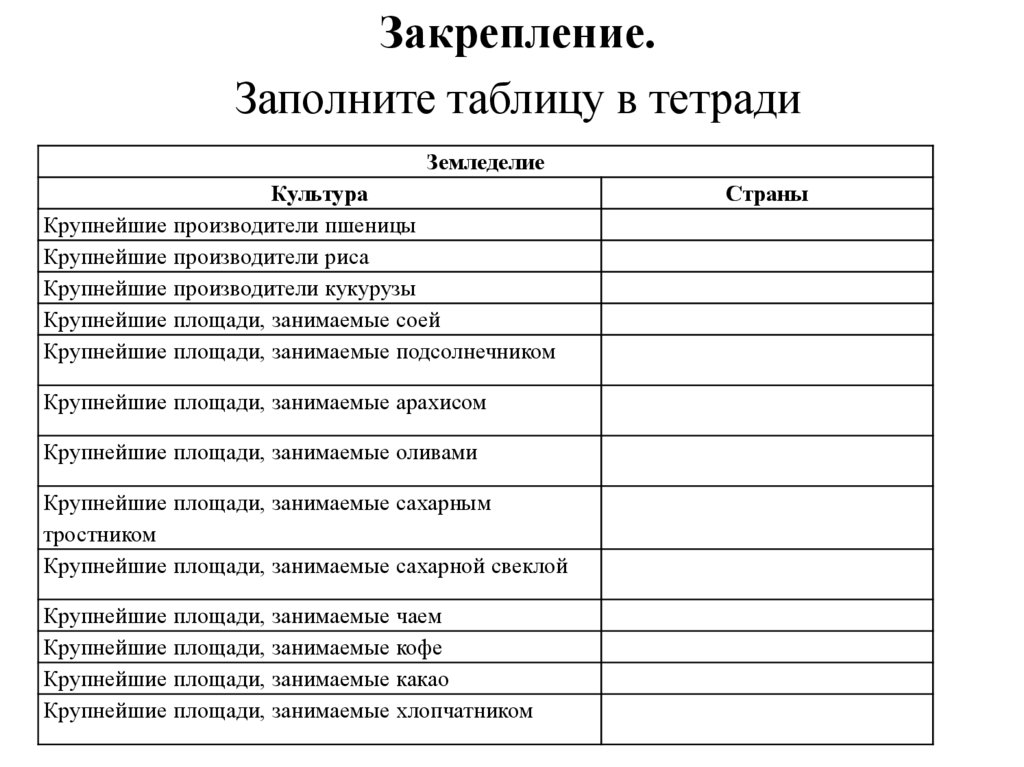 1. п.28 – 31, учебник «География»2. Заполните таблицу