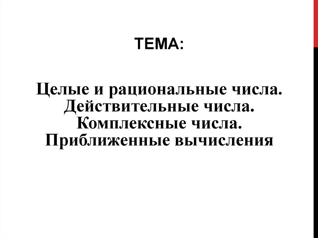 2.1 лекция. Целые и рациональные числа. Действительные числа. Комплексные числа