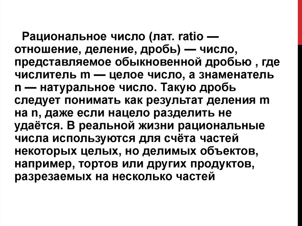Рациональное число (лат. ratio —отношение, деление, дробь) — число,