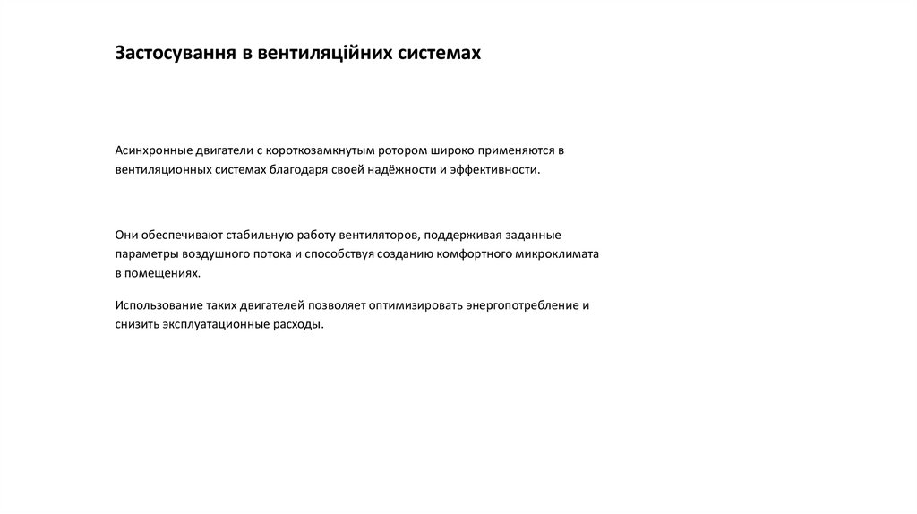 Застосування в вентиляційних системахАсинхронные двигатели с короткозамкнутым ротором широко применяются в