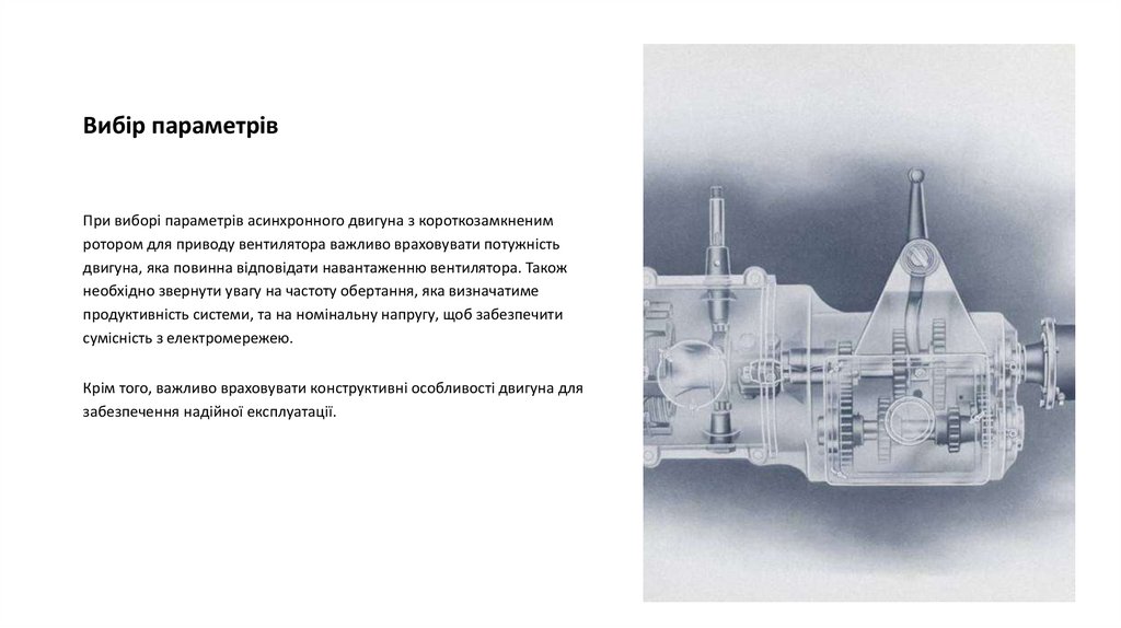Вибір параметрівПри виборі параметрів асинхронного двигуна з короткозамкненим