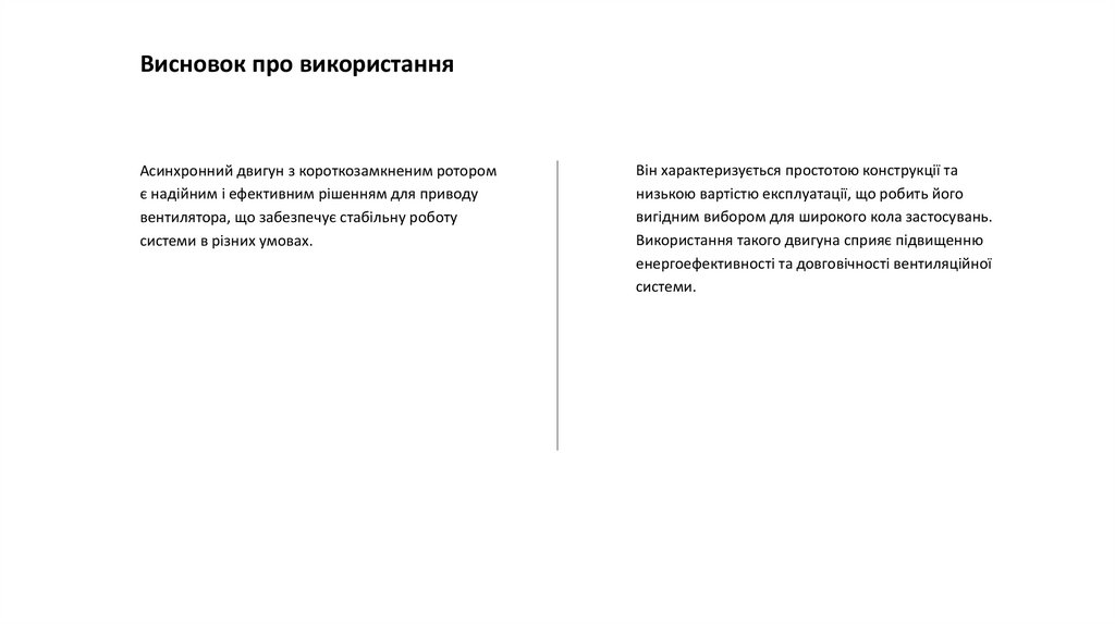 Висновок про використанняАсинхронний двигун з короткозамкненим ротором