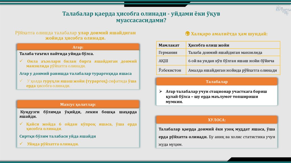 Улар ота ёки онасининг яшаш жойи бўйича рўйхатга