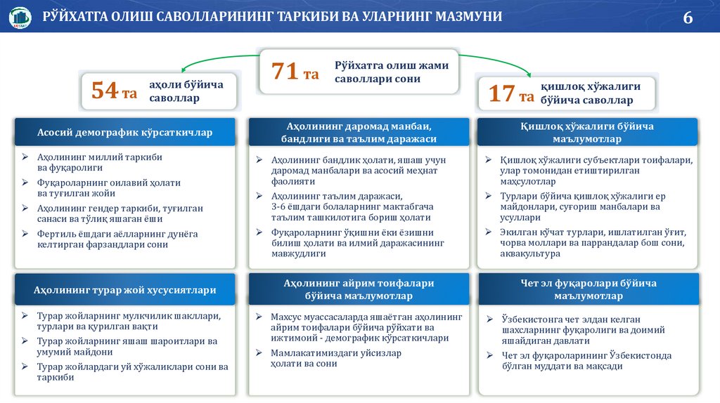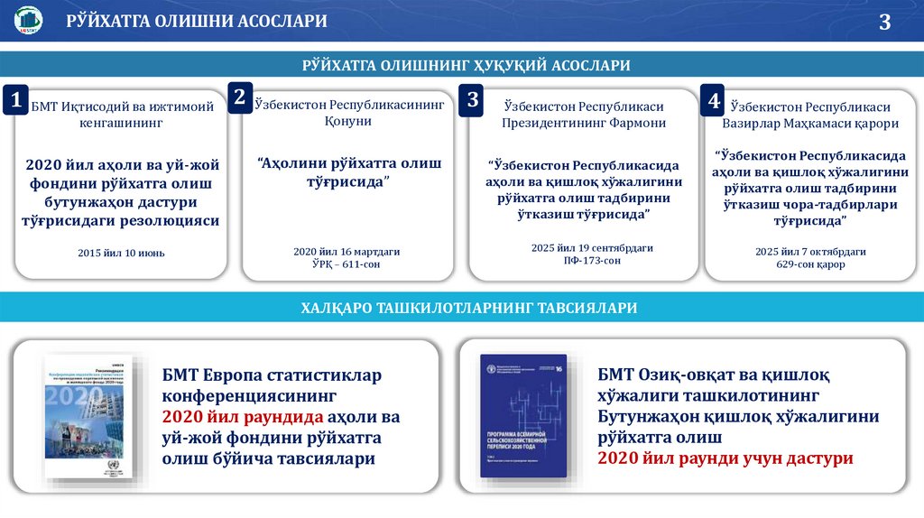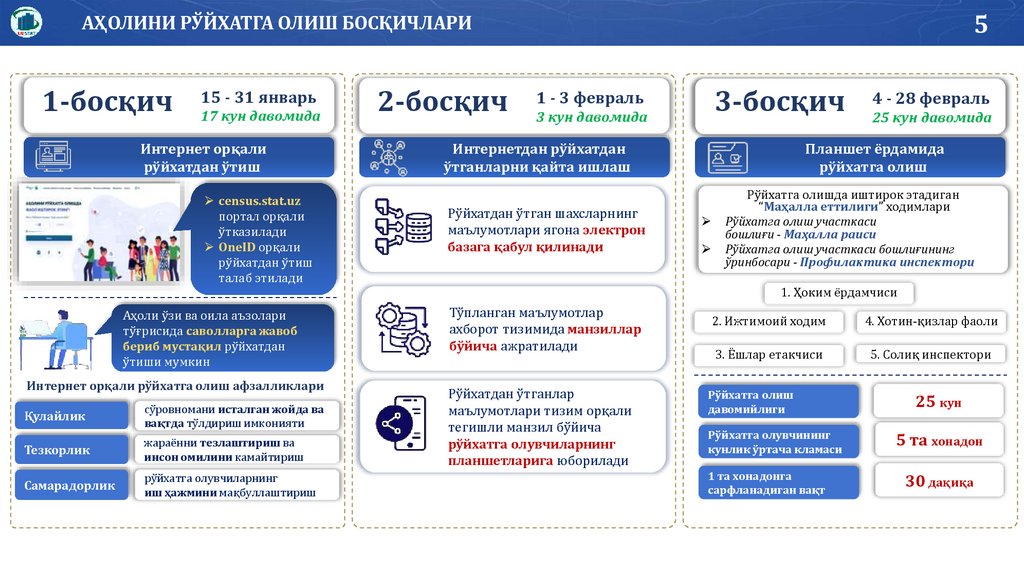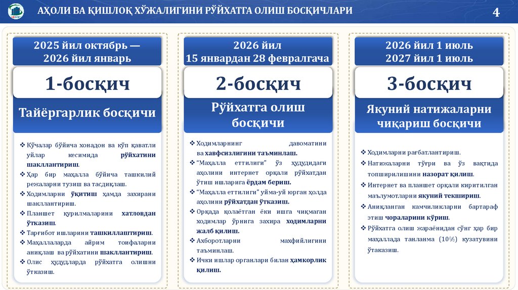 4АҲОЛИ ВА ҚИШЛОҚ ХЎЖАЛИГИНИ РЎЙХАТГА ОЛИШ БОСҚИЧЛАРИ