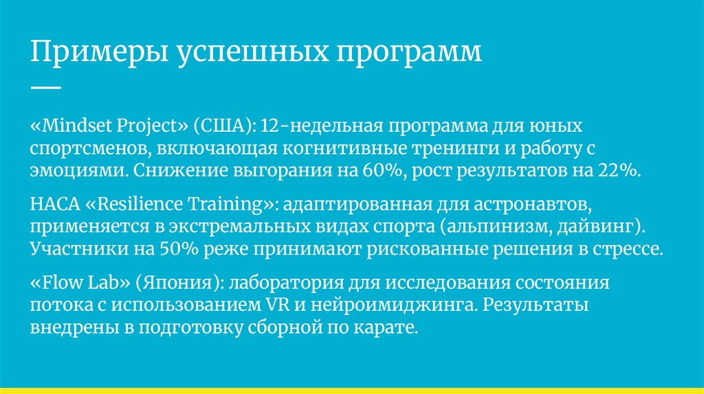 Примеры успешных программ«Mindset Project» (США): 12-недельная программа для юных