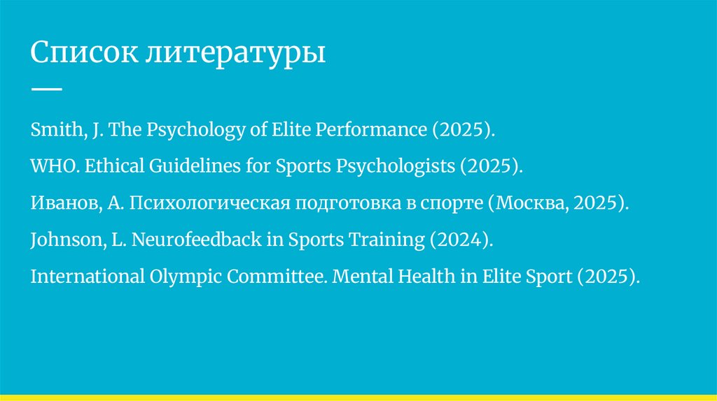 Список литературыSmith, J. The Psychology of Elite Performance (2025).
