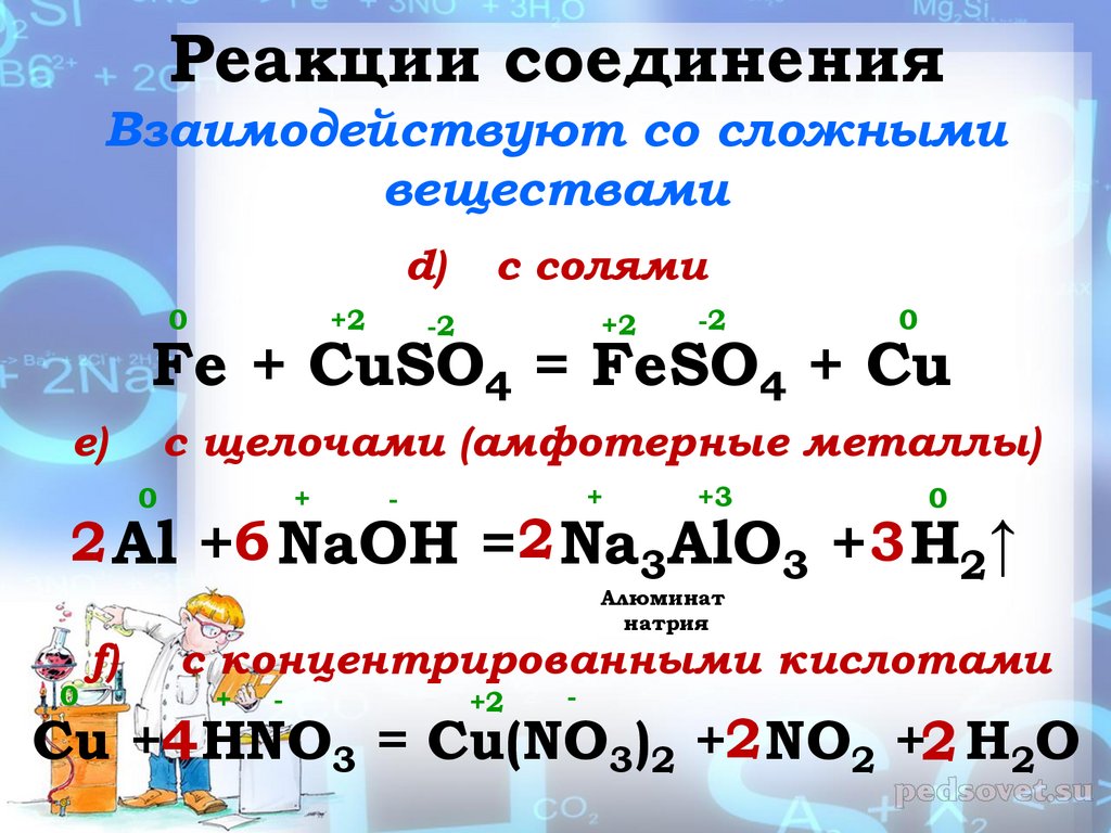 Реакции соединенияВзаимодействуют со сложными