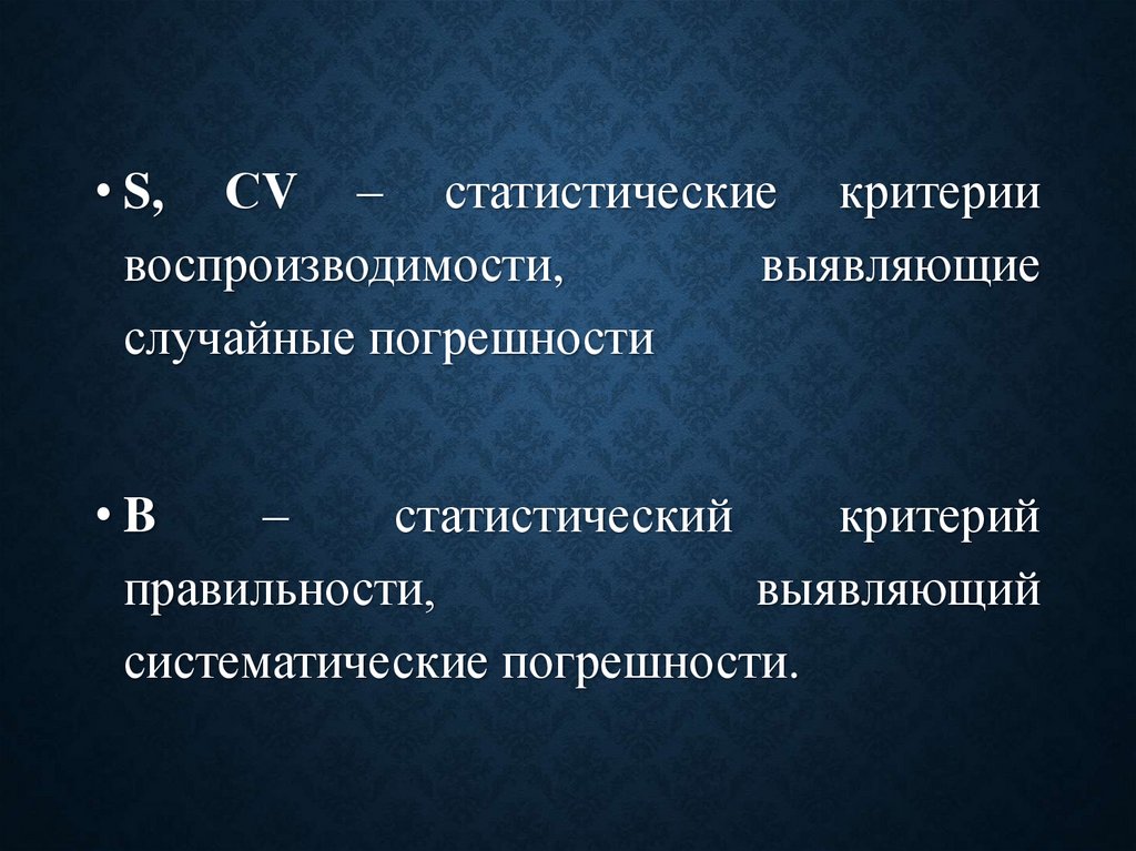 • S, СV – статистические критериивоспроизводимости,