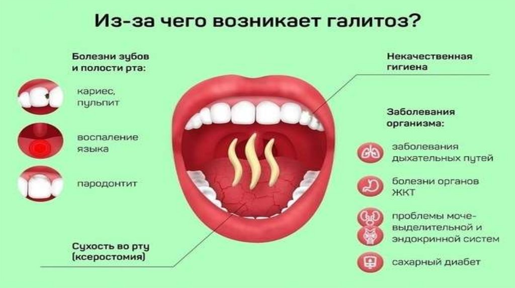 16. Галитоз (Halitosis) — это неприятный запах изо рта.