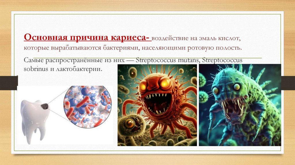 Самые распространённые из них — Streptococcus mutans, Streptococcus