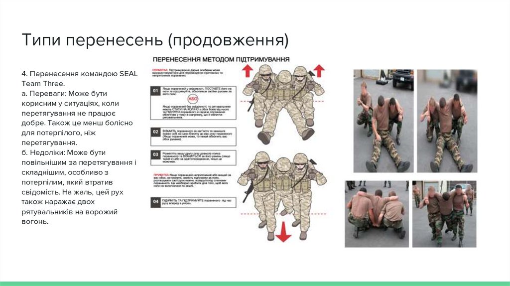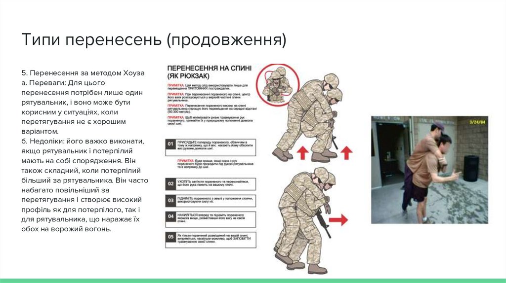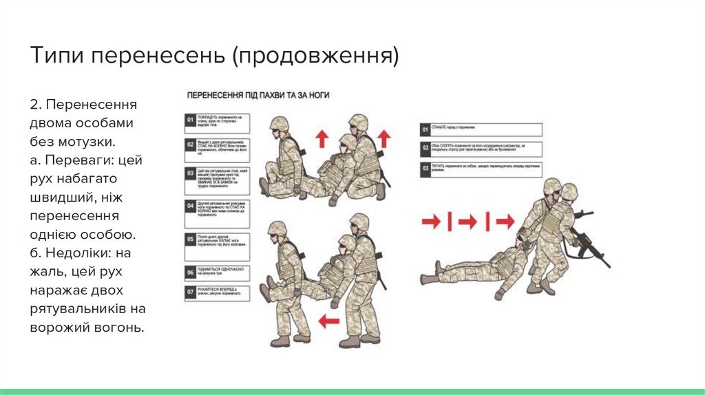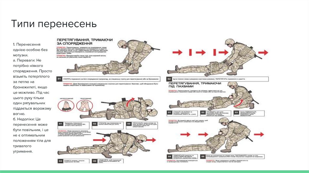 час переміщення пораненого рекомендуються певні способи переміщення або «перенесення».